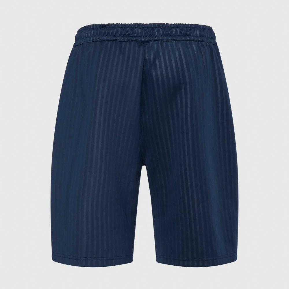 Designed to complement the Football League Jacket, the Football League Shorts feature the same vertical pinstripe pattern and contrasting side panels. Made from a fabric similar to the Football League Jacket, with an elasticated waistband and drawstring. Showcases the Umbro double diamond logo and embroidered shield badge. Ideal for sportswear or casual wear, and perfect for creating a coordinated outfit with the matching jacket.