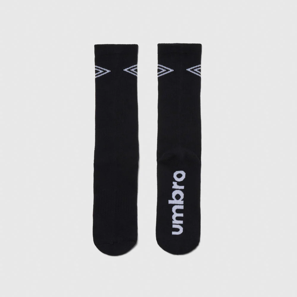 Classic crew socks in black with subtle performance features. Ribbed leg with mesh-backed jacquard branding, cushioned terry half foot, and Y-heel for a close fit. Contrast Rosso toe seam adds a clean finish.