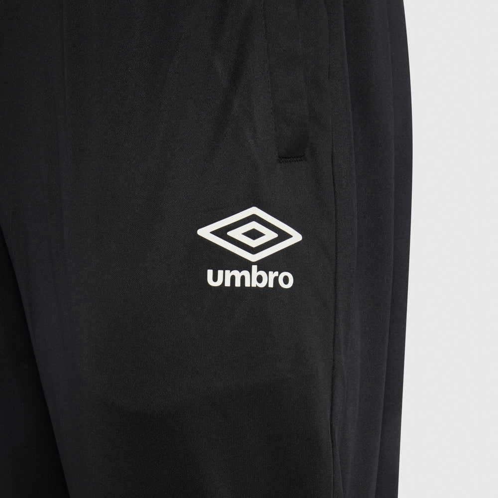 Keep comfortable and performance-ready with the Pitch Pant, designed for versatility and style. Featuring contrast panels and a slim tapered fit, these pants deliver a sleek and modern look. The zip openings at the legs ensure easy on-and-off access, while the internal drawcord and elasticated waistband provide a secure, adjustable fit. Complete with hip pockets for convenience and Umbro HeatSeal print logos for a signature finish, these pants are built for both training and casual wear.